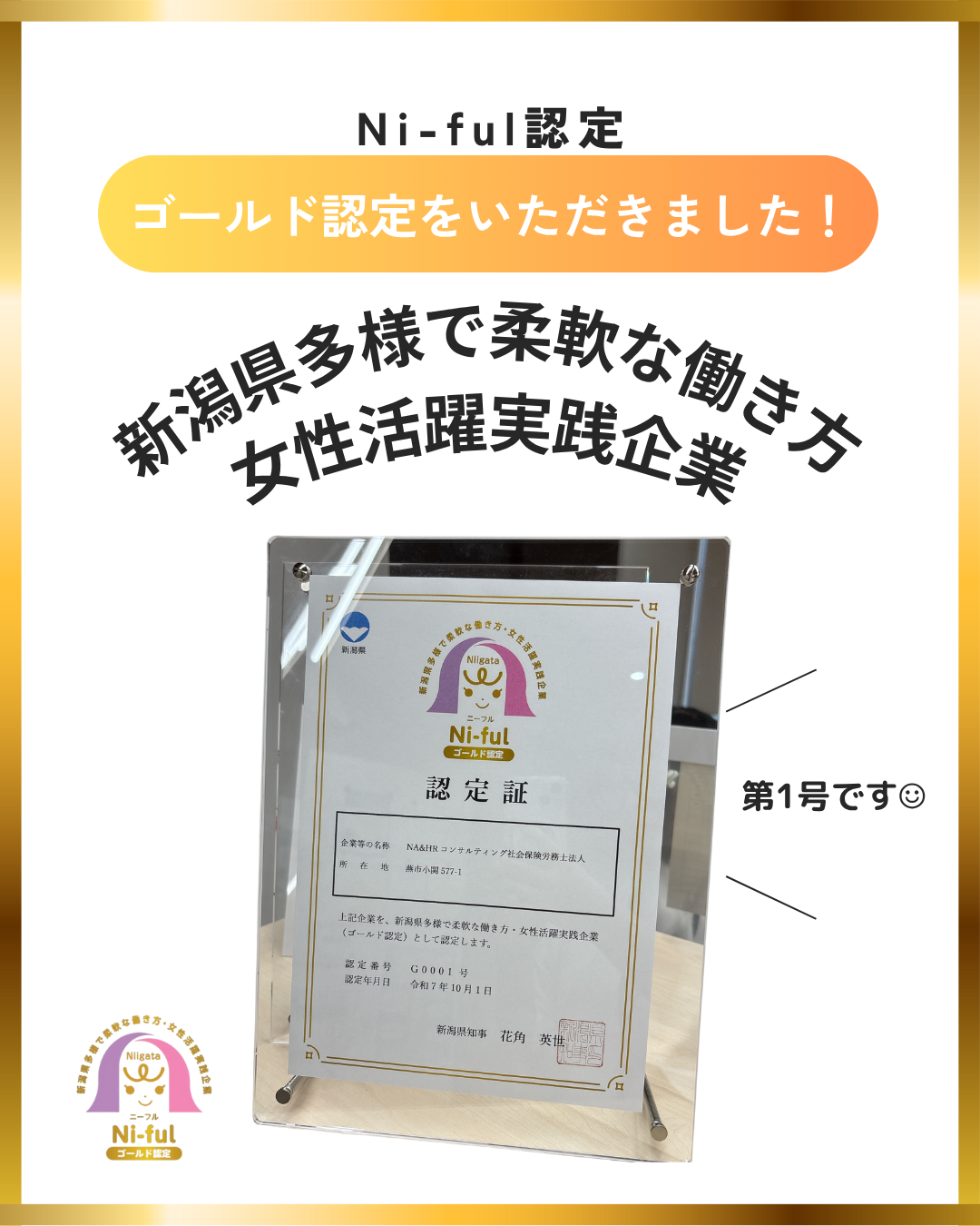 【インスタ用画像】Ni-fulゴールド認定をいただきました! | NAコンサルティンググループ